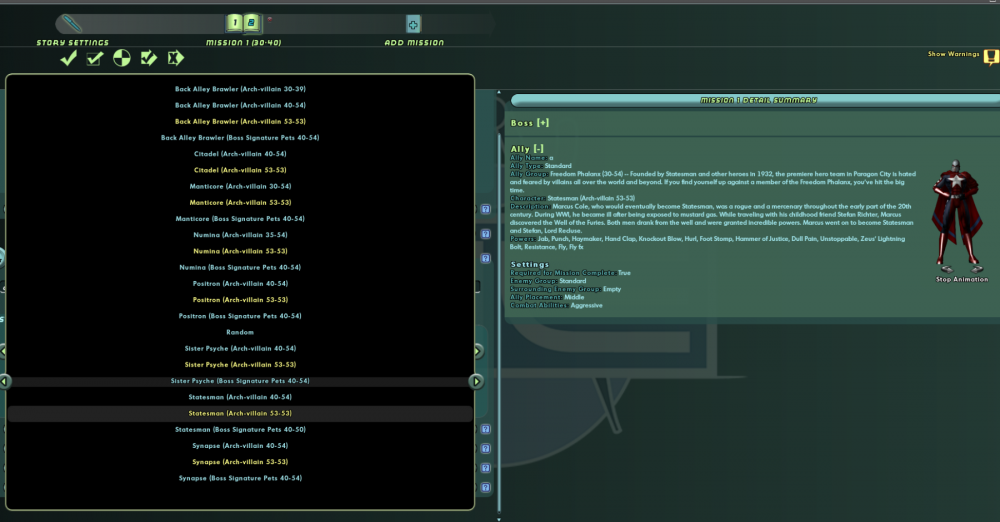 All I mean is like my signature - add level ranges next to the arcs in the list above and maybe even sort them. As a personal rule of thumb, I try to make my arcs always in the same range for each mission unless there is a story reason to do so. (Policemen vs Aliens being an example of a reason as the conceit is you are reflecting (replaying in your mind?) on a story that spanned a few years so the first missions are when you were low level and the missions level up over time along with your contact.)