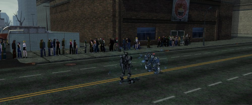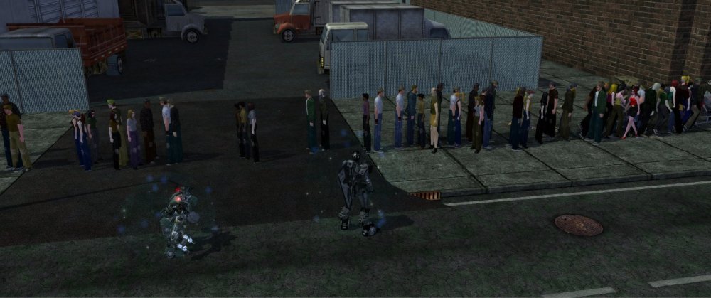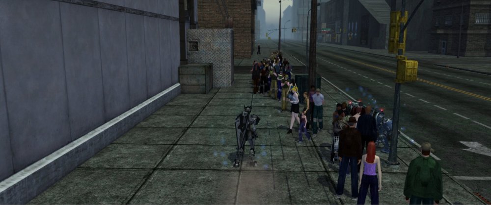 The screen capture is in Port Oakes, just across the street from Mr. Bocor. It would only render a 100 or so at a time, but this line of pedestrians was so dense, and so long, that as I moved in either direction along the side walk, it began to create lag.
