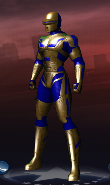 You don't have to go with the gold/blue colors, if you want to try something different. No capes. Tech wings would be ok. Glowing bits, if it fits the theme, too.
