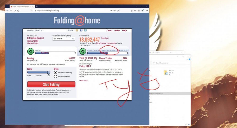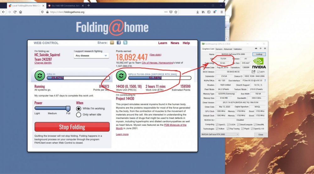 gpu's yield the best point gains because of their vastly superior floating point operations/calc's per second, my 3950x would get me about 9k-12k points per wu and take twice as long to process than my 2070s which would gain 150K-200K per wu, basically the point gain is determined by their benchmark system which i believe is powered by a 1060 base model then how much more quickly and efficiently your system runs "comparable" wu scales up the multiplier. this is why I have been sourcing as many evga 2060 ko ultra's as i can. evga has been putting tu104 dies in these cards, it's the same die that's in the 2080 and my 2070S, they have fused off the "gaming/gfx" side of the die to limit performance to that of a regular 2060 but left the workstation features intact. these features that weren't fused off vastly improve 2 things I'm interested in and that is F@H and crypto mining. https://www.tech-critter.com/evga-rtx-2060-ko-tu104-150-rtx-2080/