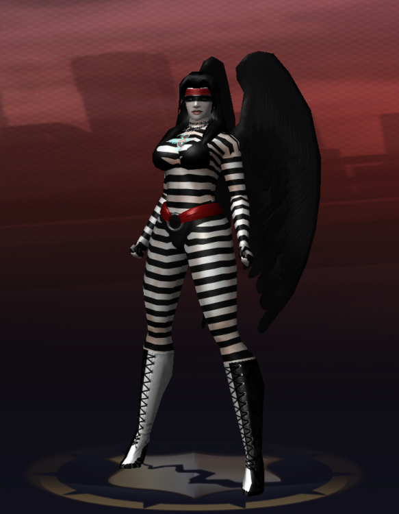 12. What is this 'main' you speak of? LOL! My highest level is Storm Kachina, a member of the Hopi tribe who was born with vestigal winglets and a penchant for messing with the weather. She's grown into a Shaman in her own right, taught the various Blessing Ways... but when the Rikti attacked (again!) she was -sent- to Paragon. (this is as close as I could get the costume designer to a traditional Kachina Dancer costume, the Clown.) Which probably has a lot more to do with her choice of activism as a teen and young adult. She is an AIM member, and a covert 'monkeywrencher' - for those who haven't read much Edward Abbey, this means she finds industrial operations on (or near) Native lands and sabotages the equipment so as to slow down the progress and/or cut into the profits. She's run up damages in the billions (trashing a bucket-wheel excavator at a copper strip mine was a several hundred million dollar price tag - who knew running a lightning strike through the controls would do that much damage?). So her relocation to the East Coast was probably less altruism and more "get her away from here before the Federal cops come and make life harder for everybody".