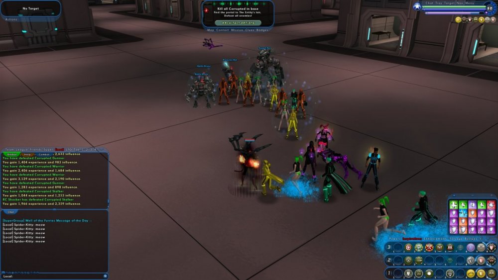 With most everyone stuck at home for the foreseeable future, people are finding themselves with a lot of time on their hands. Now, granted, we're all hardcore MMO players, so quite a few of us have been practicing 'social distancing' long before it was cool, ensconced in our mommy's basement surrounded by a pile of Hot Pocket wrappers. Still, those of us who used to have lives are now sitting with CoH open on one screen, Windows Solitaire on another, and a long-abandoned copy of Atlas Shrugged half open on the end table (spoiler: it sucks). For those desperately looking for ways to kill more time, we have the latest installment in the MOONFIRE: ULTIMATE saga. 1) The contact is Sparkle Moonstar, who tells us that Ultraneon has enough people to attack THE ENTITY. We haven't been told exactly what THE ENTITY is, so I'm assuming it's really Aunty Entity, looking to solidify her hold on Bartertown. The player busts into a lab to find the location of the Lightspire, joined by Celeste and Sparkle Moonstar. We hack a computer, then defeat four elements, then the Guardian, a rather tough EB. The enemy mobs are a custom group, the Corrupted, with about eight or nine types and cool costumes. 2) We escort Sparkle to the center of the Lightspire, but there are baddies so we whomp them, then trek back to the mission exit. Oh no, Celeste was captured! 3) The player and Sparkle go rescue Celeste. Sparkle's bio describes her as having near-infinite power, making Spider-Kitty wonder why she's needed. Maybe she's there as an emotional support cat or something. Celeste was corrupted, so we smack her a bit until it wears off, then bring her to safety. Yup, you guessed it, we have to escort her all the way across the map to the exit. 4) Some Corrupted have followed us back to the home base, so we need to go whomp them. We join up with Ultraneon and Neon Jr. and YD Slasher and Xenon, and they all have friends too, resulting in a huge swarm of catgirls following the player. Although I couldn't see any tails, so maybe they're catgirls in spirit. For those of us who have just finished the last puzzle in the Big Book of Jumbo Crosswords our cousin sent us back in '03, MOONFIRE: ULTIMATE presents us with a great opportunity to kill time as we sit at home waiting for that 24-pack of paper towels to arrive from Amazon. Seriously, why is everyone so concerned about toilet paper when paper towels are in stock? They work just as well. Anyway, every mission in MOONSTAR: ULTIMATE will help you while the hours away: the first has a ton of objectives, the second and third make you walk back to the exit, and the fourth is a defeat all. By the time you're done, society will have finished collapsing, leaving you with no choice but to drive to Bartertown for toilet paper. -