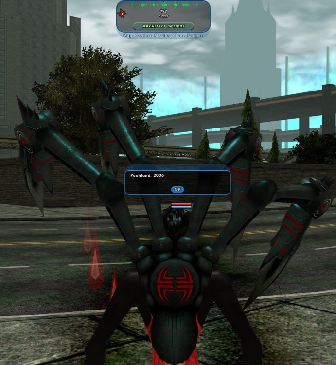Because the arc has a level of 6-54, I used the lvl 6 Spider I made for the previous mission. 1) So, four years ago, I got an email from a buddy on the force named Buddy Bolton. He's been doing a little off the books work for some extra donut money, and just got wind that the lab he's guarding is about to be hit. Upon entering, I'm told that I can either waste the badguy or let them get away. Scarlet arrives and meets up with Buddy. A moment later, we spot a huge purple lobster and a flying purple squid running for the exit. Hoping that this isn't another LSD flashback, Scarlet and Buddy open fire on the lobster- MISSION FAILED You chose to let the bad guy get away! Like they said in Jaws, we're going to need a bigger kitty. I log off and get my lvl 50 SoA, Spider-Kitty. Her and Buddy blast the aliens into sushi rolls. 2) A few months later, Buddy has been promoted to Sergeant for his help in putting down the BLM riots. Now, he's gotten wind of some Warshade activity in Praetoria, come check it out with me? It seems a bit odd that a simple PPD cop would be handling things in Praetoria, but eh. We arrive in Neutropolis, read some plaques and chat with some decorative NPCs. A hacker named Hatchet is spotted dropping some thumb drives in the parking lot; Spider-Kitty teaches him not to litter, then takes the drives home in case there's kitty pr0n on them. 3) Now there's a lab with Council and Void Hunters and a Shadow Cyst Crystal and some sort of generator. Meeting up with Buddy again, who is wearing a snazzy suit of power armor this time, we clobber the Council troops, smash the generator, rescue some allies- MISSION FAILED You chose to let the Void Hunters destroy the crystal! Uh, yeah, that's it. I totally chose to destroy it, to keep those nasty, nasty aliens on their side of the wall. 4) Now things are going south in Praetoria again, time for the PPD to swoop in and save the day. We can choose to spank the badguys, or wait 30 minutes until the radiation kills us, or something. Kitty ventures into a bad part of Praetoria, where every lawn has at least two cars on blocks and the lawns are covered in Natty Light cans. We free some allies, then defeat Bewb Robot, aka Nightstar, except it's really Metronome. This is the version of Nightstar from the BAF, with the sequester power, making for a tough fight even as an EB. Lots of decorative NPCs. 5) Off to the Keyes Island reactors to defeat Metronome for good. He's in Siege's body, and again can sequester foes. Kitty breaks Siege, then frees some allies, then- MISSION FAILED You chose to let the Nictus steal all the donuts! Policemen vs. Aliens is yet another very well written arc, with a LOT of extra details, like clues and non-required mobs to add atmosphere. However, this arc does have some problems. It feels a bit odd for a simple PPD cop to be fighting aliens in Praetoria, even with a super powered friend like you. Worse, you never get the donuts Buddy promised you in the first mission. The idea of letting the player choose his own path is a novel one; I used it myself back on live in my award winning arc Cat: It's What's For Dinner. However, here it has some problems. In some places, it's way too easy to 'choose' the wrong choice; several times, I never even saw the objective I was supposed to defend. In other missions, the player is required to wait 30 minutes in order to make one of the choices. Finally, it feels odd to give the player a choice in the early missions, since everything that comes after will be the same no matter what you choose. Despite this, Policemen vs. Aliens is another great arc that everyone should play. -
