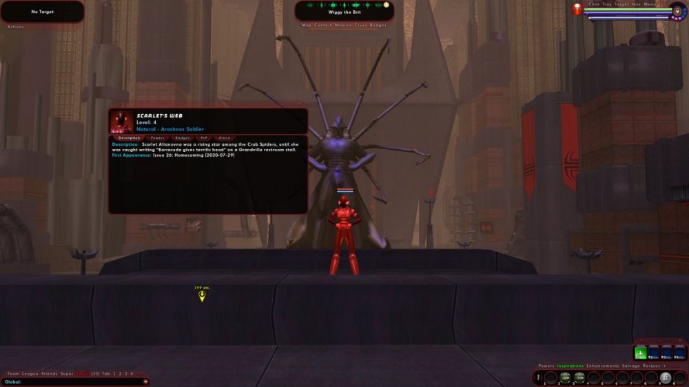 In order to experience the arc properly, I made a new Crab Spider. 1) The contact is Alan Desslock, who hates Arachnos, but he's willing to help me out because he's such a nice guy. He needs someone like me, because I'm an 'insider', but also I'm expendable, which makes Scarlet wonder what one needs to do to be considered irreplaceable to Arachnos. Maybe if she learns to make coffee just the way Lord Recluse likes it, with just the right amount of cinnamon. Anyway, Desslock needs information, so he sends me into an Arachnos base on a datasteal, and oh yeah, also kill everyone. Arachnos doesn't mind that sort of thing, honest. 2) Fort Darwin has been taken over by Longbow, but they couldn't have done it by themselves, they would need an inside man. Off to another base, where we find a receiver, and punch a Longbow Warden in the box until she spills the beans. 3) Now off to the Longbow base, to prevent them from wiping their email servers by hitting them with baseball bats. Scarlet liberates three servers, but the fourth gets smashed even before I see it, mission failed, but fortunately we managed to salvage a hard drive. 4) I've talked to the arbiters, who patted Scarlet on hte back and gave her a cookie, and gave her the go-ahead to arrest Operative Carmack. Off to another base, with is entirely brown except for pools of lava. He rants about how Professor Echo warned him about the end of the world. This is another well written arc, with no overtuned mobs or time wasters (the first map is a defeat all, but I'll forgive that because it's not to big). The only thing that doesn't click is Desslock's motivation. He tells me how he left Arachnos because they sent him on a suicide mission, maybe because he burnt the coffee or something, but still he hates Longbow so very much that he's willing to secretly help Arachnos, while I get a raise and the corner office.