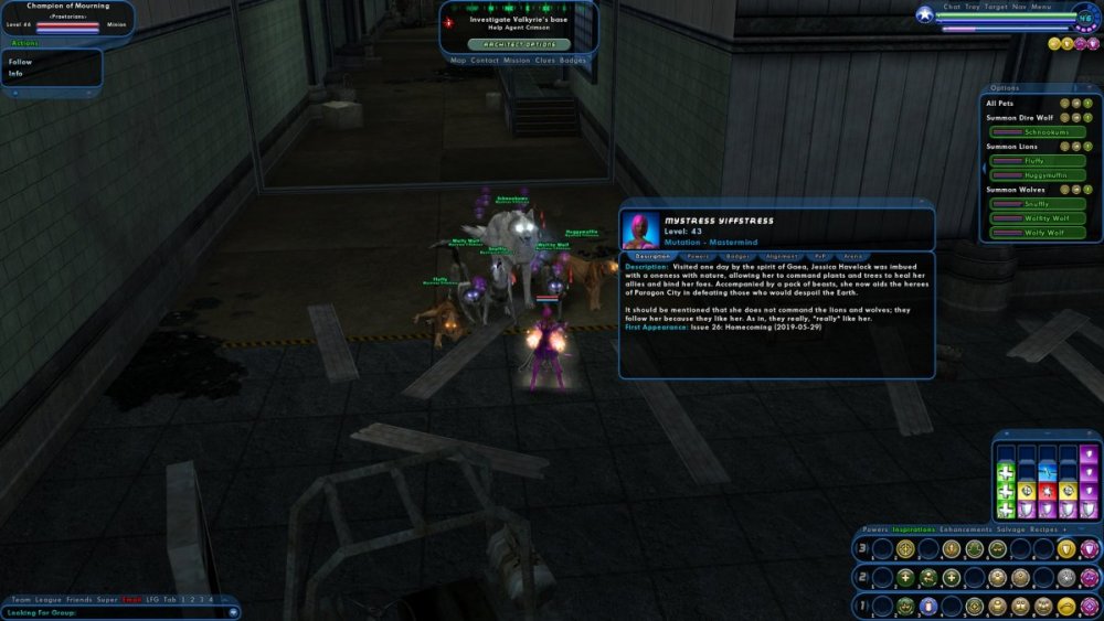 Spectral Eclipse: Origin #19738 The contact is Spectral Eclipse, who tells you that he is now dead, and you're getting an automated voice message telling you to feed his dog or whatever. He must have been typing it with one hand while bleeding out, because the grammar is really, really bad. No contact bio, and the sendoff and still busy texts are all one sentence. For some reason, the player is sent to the ruined city map, where that dude's minions are fighting Praetorian ghouls for some reason. There's a custom group, 'military soldier' or something, with only one type and no bio. The player clicks a portal, then smashes a Shadow Cyst, which for some reason mind controls the player. I'm using the phrase "for some reason" a lot, but that's what playing this arc feels like. After that, the nav bar says "Bologna egg" or something... it's another Cyst Crystal, but it's being attacked, and if you don't get there fast enough the mission fails! Then you clobber a guy, then find a 'sacrifice', then lead him across the map to the egg. Congratulations, you've resurrected the Big Nasty. This arc is a dumpster fire: sparse writing, terrible grammar, missing details, tedious glowie hunts, possible failure, no real story. Worst of all, players do not enjoy being mind controlled and made to do the villain's dirty deeds. Heroes want to save the world, villains want to rob banks, and Praetorians want to, uh, I dunno, sniff Dominatrix's panties or something. An arc that isn't marked as villainous should have the player catch the bank robbers, rescue the girl, and vanquish the world-threatening archvillain, although you can throw in Dominatrix's panties if you really want to. I won't mind. Honest.