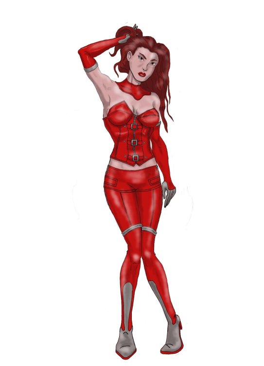 Just posting this here. It's my first attempt at drawing a COH character in years. She doesn't even have a name, just a costume. Comments welcome -- encouraged even.