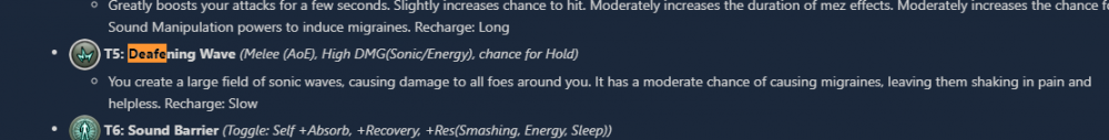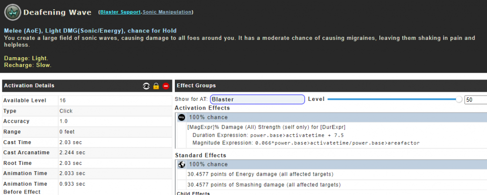 I could be wrong, but every source I find here in patch notes or on the wiki says that Sonic Manipulation's Deafening Waves should inflict HIGH damage, yet in game and in the city of data sites, it is listed as inflicting LIGHT damage. Which, coupled with its chance to hold being only a chance, makes the power... Really underwhelming as this set's PBAoE. Is it working as intended ?