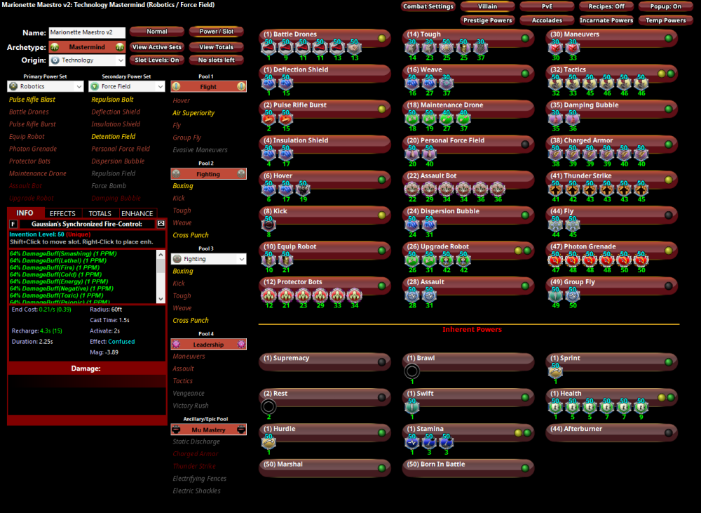 This is useful and enlightening and I clearly don't understand Procs as well as I thought I did Are you suggesting I should load my health with the Procs and eschew the set bonuses? I took Thunderstrike in that build because although I'm going for a "Stand Off" build I'm very aware that even the best defences will be breached at some stage and I have no meaningful CQC damage. Kick, GSA and the other prestige melee attack (name eludes me right now becuase I've never liked it) are not enough when the manure impacts the thermantidote! Most of those KBs came almost naturally in the build. I didn't purposefully factor them in but I will take on board what you suggest and refactor.