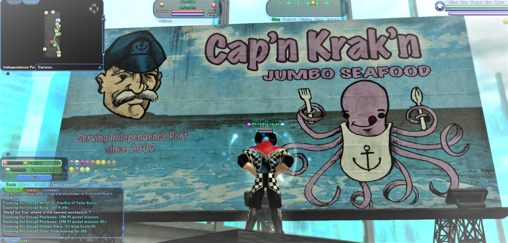 Currently playing a new, old-school blaster: Marxsman AR/Dev Note: he's not a communist, but Marksman was taken. Also: A Fire/Fire Stalker playing old school with Placate. I know, not everyone's cup of tea, so what. His name is Enflambe' Will eventually get Rock Largo the Ninja/Time MM and La Merle the Sonic/TacArrow blaster to 50, currently both at 45.