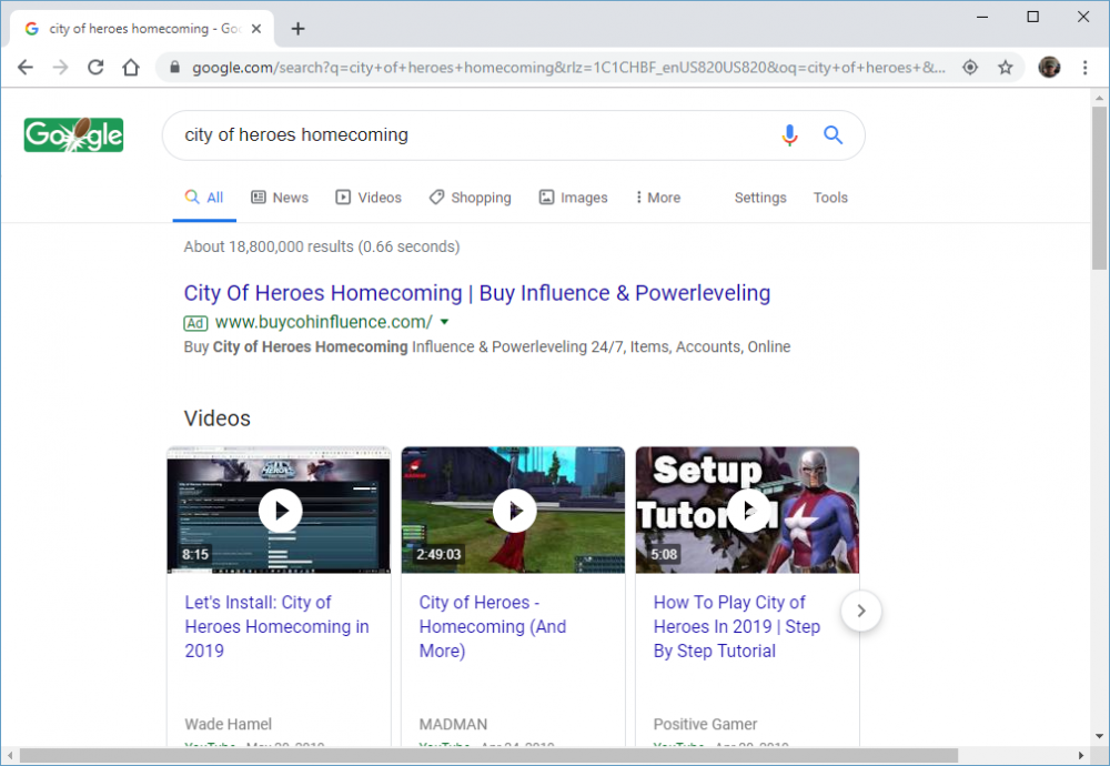 I just recently did a search for CoH Homecoming on Google and the first link to appear is a PAID add to "Buy CoH Influence and power leveling". It was probably not all that expensive since the market for buying a Google add for results in "City of Heroes Homecoming" is probably not that great. But it is kind of a sign that Homecoming has made it. You have generated a parasitic secondary market.