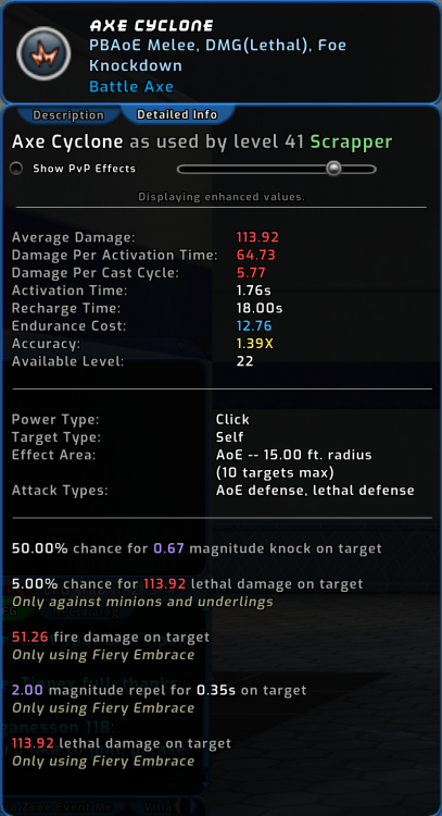 I've noticed with my new Battle Axe/Electric Armor scrapper that every mob runs from me. I looked at the power descriptions and under Axe Cyclone it says it causes 2.00 magnitude repel "Only using Fiery Embrace", is this causing them to run even though I don't have Fiery Embrace?