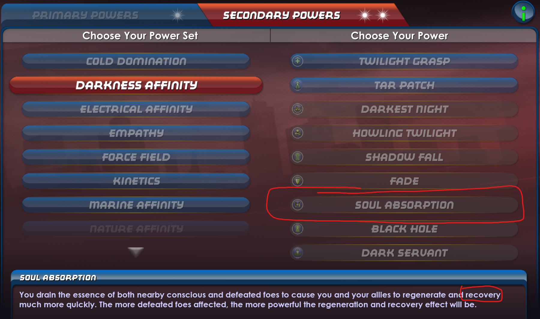 In the Character Creator, Controller, Darkness Affinity, Soul Absorption, the text says "cause you and your allies to regenerate and recovery much more quickly" Should probably be "regenerate and recover much more quickly"