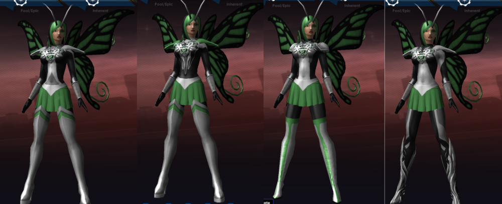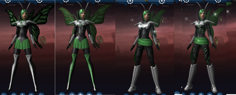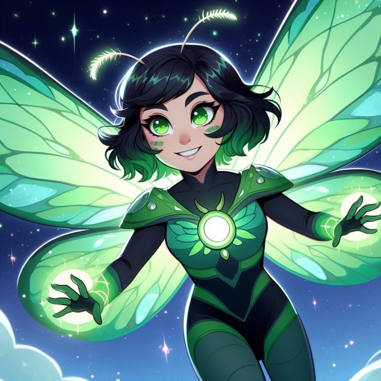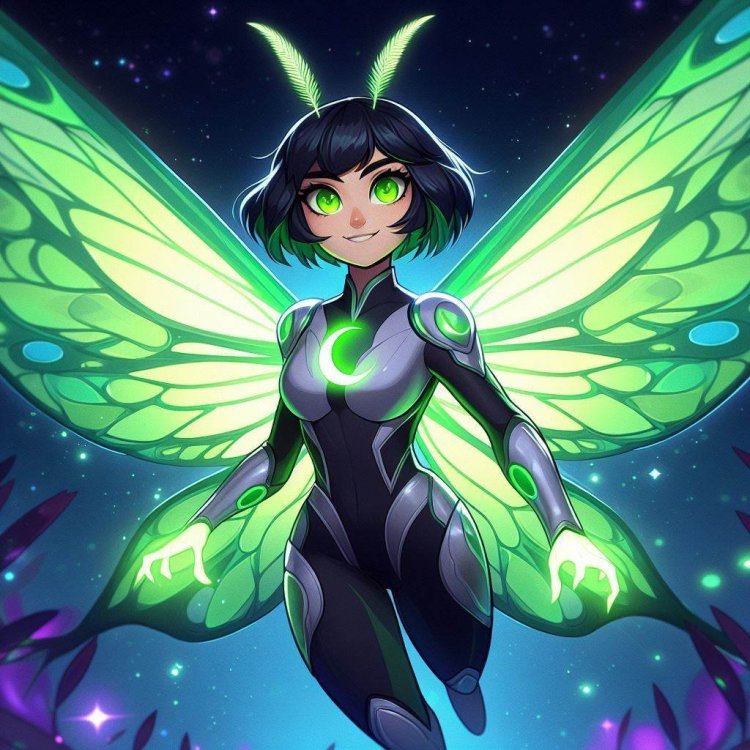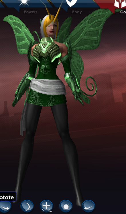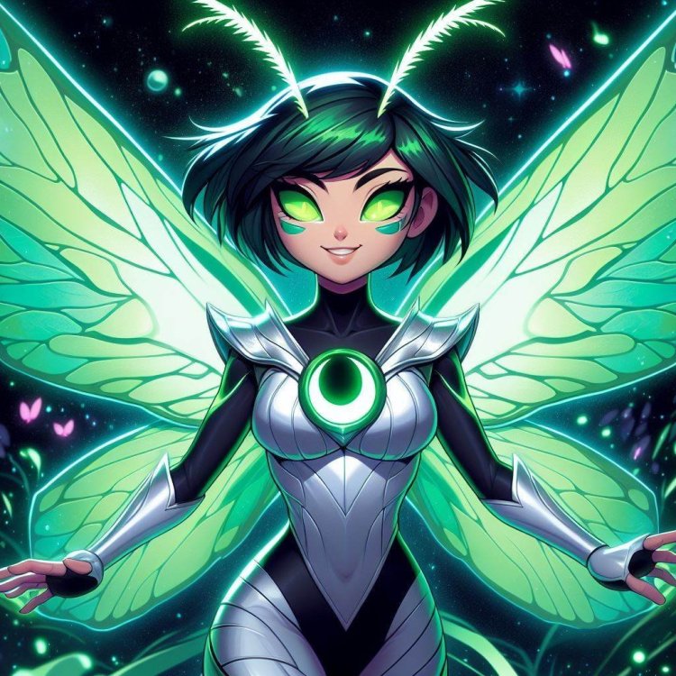 Working on updating my kheldian concept, the Moonbright Moth. Inspiration wise shes a mix of starfire from teen titans, power rangers/kamen rider, green lanterns, and Mothra! I get the green from the Luna moth, since I figured luna moth made snese for a moon themed kheldian! I'd love some help or input on this. Some of hte costume designs on im right now, and some AI mockups I've made to help me brainstorm.