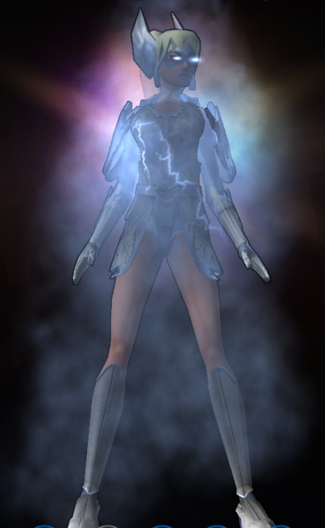 While I was working on alt costumes, I finally decided on a more battle-worthy costume for Cloudbreak, my storm tank (Electric / Bio Brute). Thunderhead aura is tricky to screenshot.