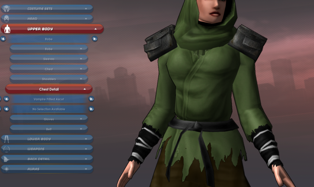 Another way to fill in the gap left by the Martial Arts robe and the Hood would be to use the Vampire Frilled Ascot chest detail. This...
