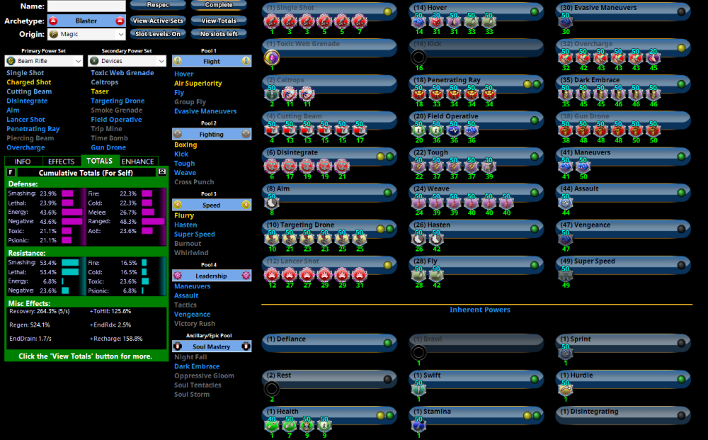 Here's a Totally Playable and Likeable build for Grav/Energy [code]| Copy & Paste this data into Mids Reborn : Hero Designer to view the build | |-------------------------------------------------------------------| |MxDz;1547;715;1430;HEX;| |78DA6594C96F12511CC7DF2C58A1B4942E74A52D944A0B650AD6A38969BA6929DAD| |A448D9766D24EE8241408A0B1470F261E4DDD4E9AD4C4C4B89D5DFF068DF6E0C18B| |174FD2D59317FC31DF5F81844986CF9BEF7BBFE57D671E895BD3CEB773B7CF09C93| |595D2F3F995E9CC8699D60B999C2DA127CD5545D0D540B7AF32B132954917729994| |3697D36F9A85CDE3E7C1EA8AC97C5EBF912A6833692397DC3C7E148EC50C852D670| |D63CD690D170C3D6BA6934DD6C3AC995C2FD093EB786ACDC8E5D7CD6CEF4CD65CD5| |AAC913FAAA413FF98291DBECA2CEC6CAB7D567F92AC9E2092166178EA760F336F84| |7AEAC11A2A7ACA9A2489A044D9516097EBB38B1C4BC0C9E5C669E2D5BA1083FD9A1| |584125490923770BD34373369EB3754896D67AA4581C273460CED6F04EB1EA3BDE8| |3CE0FCC8F60F327B0E53328515E3BF76EEF41AD21D21A596BFC295B9A425A13D768| |EAA741D02E7C7E3030000687C0D14EA297781AFDED530A17E77385E18F4AF9DCC8A| |7BA67B1AE751EECBA00FAE24CDEEF01E569431E5B5BD974AF2ADA8BCC5DD093427E| |CF06D89506DD54AF83EB7570BD10D71BE37A63E7995CAF8D623AD9F3CE67B29527B| |60D96B7D6CDBD74C7A1F52C301360DF45E625B0FF0E7848E8652F7BEFA998DB62DE| |07071F301F3227C176EAC9CB5E7AB9CF09EA65009A32B087F715D9671E320F50FB8| |8E0E7DAFE2FFCBEBF32BF31BF83811D30F80BDFCA5F8A1D660F8723C8774A638E33| |A3603006DEA5D011C42823ECFB28FB1E62DF43ECFB6FA71061DE5B98F7A6D194C6E| |7487B010FC65F325F315F83B137608462A28891A23BB2F52DC67E807EB572564B7D| |6ACDB92DD12516EA9445B5728E856429450729122B1138B45BAB8D40DBAB6A8A348| |F93215FC1AE641F76AC16F98454D7CAD263BC31750B0C3C8293F1506557A5505D9F| |D13A2556A74CD42967EA147B0BFD0771957F1E2A8CAE4A4B8EEAF86ACDF85ACDF87| |ACDF879A8EAF37F1913F9CD| |-------------------------------------------------------------------|[/code]