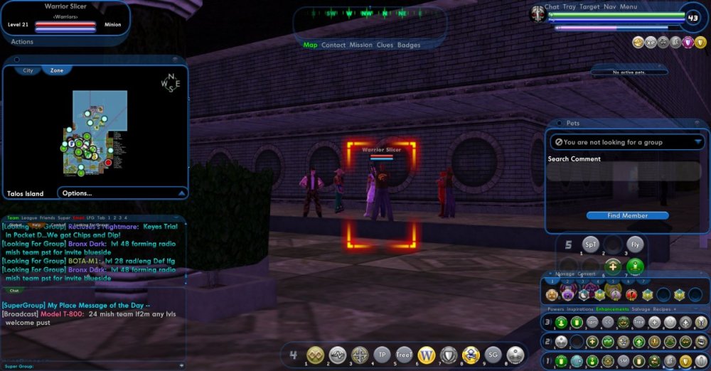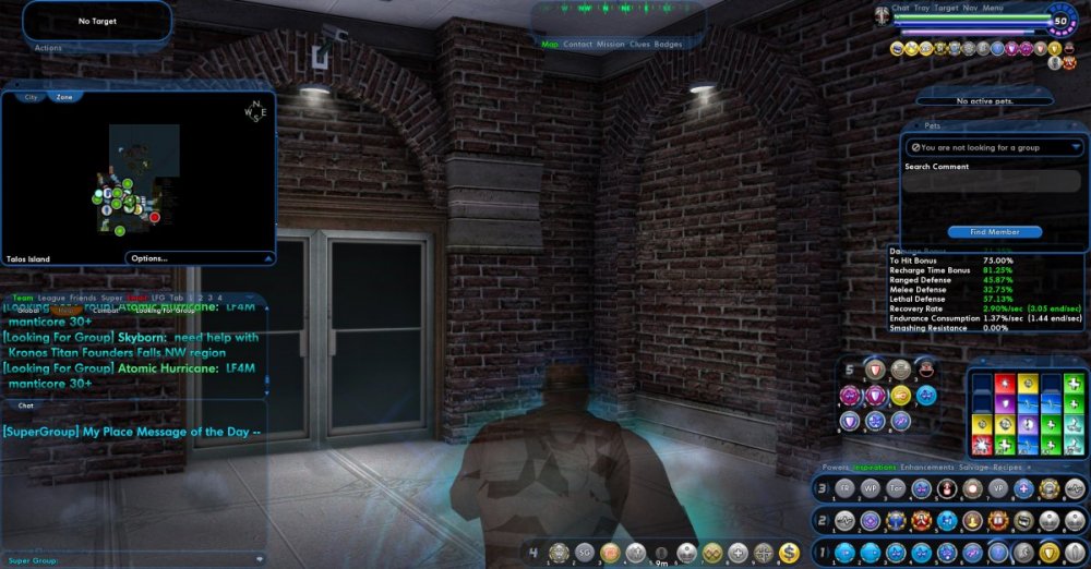 Don't get to attached to that one, as iirc it will disappear at some point as wasn't meant to be a player command only for GMs. I think they are waiting to improve the base teleporter power first though. - /macro find target_customnext x Replace the x with what you want to find, eg void, boss, winter guard etc. You can use partial text to match (e.g. 'win' would find targets with wnter or winner). You can right click the macro to change the text you search for. - /bind shift+i toggle incarnate Brings up i-powers window without digging around for it. - /macro Q powexec_location target Earthquake I'll use macros so you can click for powers like earthquake and other location drop powers. The powexeclocation means I can have the target selected by tab, then press the macro (or use the tray key), and it sets the earthquake down centered on that enemy (if within range)). Other location powers work like this too. You can also use 'me' or a distence instead of 'target'. - /bind Y "dialog_yes" and /bind N "dialog_no" Not a macro, but lets you press Y or N to instead of clicking on ok/cancel, accept/deny and yes/no dialogs instead of clicking around on screen. - /macro RF “tell $target, I’m about to move you to my location.$$powexecname recall friend” For recalling a team mate and telling them. There are ways to change the icon too if you don't like the grey macro, though if it's a power you won't see a cool down. There's a guide on how in the guide section.
