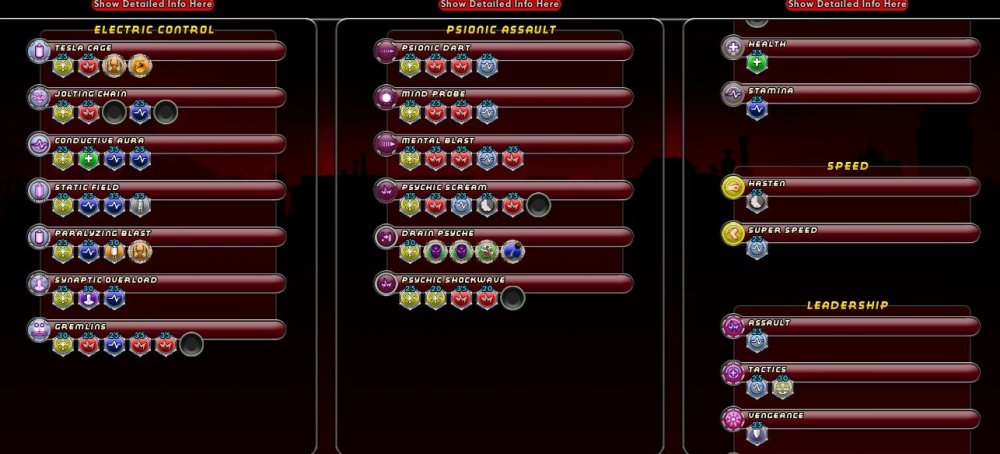 Finally got MidsReborn working... this is a pie-in-the-sky build as it's super expensive. Villain Plan by Mids' Reborn : Hero Designer 2.7.2.10 https://github.com/Crytilis/mids-reborn-hero-designer Click this DataLink to open the build! Jack Flash: Level 50 Magic Dominator Primary Power Set: Electric Control Secondary Power Set: Psionic Assault Power Pool: Fighting Power Pool: Leaping Power Pool: Speed Ancillary Pool: Psionic Mastery Villain Profile: Level 1: Tesla Cage -- BslGaz-Acc/Hold(A), BslGaz-Acc/Rchg(3), BslGaz-Rchg/Hold(3), BslGaz-Acc/EndRdx/Rchg/Hold(5) Level 1: Psionic Dart -- Thn-Acc/Dmg(A), Thn-Dmg/EndRdx/Rchg(5), Thn-Dmg/EndRdx(7), Thn-Dmg/Rchg(7) Level 2: Mind Probe -- Hct-Dmg(A), Hct-Dmg/Rchg(9), Hct-Acc/Dmg/Rchg(9), Hct-Acc/Rchg(11), Hct-Dmg/EndRdx(11) Level 4: Telekinetic Thrust -- CrsImp-Acc/Dmg(A), CrsImp-Dmg/EndRdx(13), CrsImp-Dmg/Rchg(13), CrsImp-Acc/Dmg/Rchg(15), CrsImp-Acc/Dmg/EndRdx(15) Level 6: Jolting Chain -- Apc-Dmg(A), Apc-Dmg/Rchg(17), Apc-Acc/Dmg/Rchg(17), Apc-Acc/Rchg(19), Apc-Dmg/EndRdx(19) Level 8: Conductive Aura -- SynSck-EndMod(A), SynSck-Dam/Rech(21), SynSck-EndMod/Rech(21), SynSck-Dam/Rech/Acc(23), SynSck-Dam/Acc/End(23) Level 10: Mental Blast -- Thn-Acc/Dmg(A), Thn-Acc/Dmg/Rchg(25), Thn-Acc/Dmg/EndRdx(25) Level 12: Static Field -- FrtHyp-Sleep(A), FrtHyp-Sleep/Rchg(27), FrtHyp-Acc/Sleep/Rchg(27), FrtHyp-Acc/Rchg(29), FrtHyp-Sleep/EndRdx(29) Level 14: Boxing -- PndSlg-Stun%(A), PndSlg-Acc/Dmg(31) Level 16: Psychic Scream -- Rgn-Dmg(A), Rgn-Dmg/Rchg(31), Rgn-Acc/Dmg/Rchg(31), Rgn-Acc/Rchg(33), Rgn-Dmg/EndRdx(33), Rgn-Knock%(33) Level 18: Paralyzing Blast -- BslGaz-Acc/Hold(A), BslGaz-Rchg/Hold(34), BslGaz-Acc/Rchg(34), BslGaz-Acc/EndRdx/Rchg/Hold(34) Level 20: Drain Psyche -- Pnc-Heal/EndRedux(A), Pnc-EndRdx/Rchg(36), Pnc-Heal/Rchg(36), Pnc-Heal/EndRedux/Rchg(36), Pnc-Heal(37) Level 22: Tough -- StdPrt-ResKB(A), StdPrt-ResDam/Def+(37) Level 24: Weave -- LucoftheG-Def/Rchg+(A), Ksm-ToHit+(37), LucoftheG-Def/EndRdx(39) Level 26: Synaptic Overload -- MlsIll-Acc/Rchg(A), MlsIll-Conf/Rng(39), MlsIll-Acc/EndRdx(39), MlsIll-EndRdx/Conf(40), MlsIll-Acc/Conf/Rchg(40) Level 28: Super Jump -- WntGif-ResSlow(A) Level 30: Hasten -- RechRdx-I(A), RechRdx-I(40), RechRdx-I(42) Level 32: Gremlins -- CaltoArm-Acc/Dmg(A), CaltoArm-Acc/Dmg/Rchg(42), ExpRnf-Acc/Dmg(42) Level 35: Combat Jumping -- LucoftheG-Def/Rchg+(A), LucoftheG-Def/EndRdx(43) Level 38: Psychic Shockwave -- Stp-Acc/Rchg(A), Stp-EndRdx/Stun(43), Stp-Acc/EndRdx(43), Stp-Stun/Rng(45), Stp-Acc/Stun/Rchg(45), Stp-KB%(45) Level 41: Link Minds -- LucoftheG-Def/Rchg+(A), LucoftheG-Def/Rchg(46), RedFrt-Def/Rchg(46) Level 44: World of Confusion -- CrcPrs-Conf(A), CrcPrs-Conf/Rchg(46), CrcPrs-Acc/Conf/Rchg(48), CrcPrs-Acc/Rchg(48), CrcPrs-Conf/EndRdx(48) Level 47: Psionic Tornado -- Dtn-Acc/Dmg(A), Dtn-Acc/Dmg/EndRdx(50), Dtn-Dmg/EndRdx(50), Dtn-Dmg/Rchg(50) Level 49: Mind Over Body -- TtnCtn-ResDam/EndRdx(A) Level 1: Brawl -- Empty(A) Level 1: Domination Level 1: Quick Form Level 1: Prestige Power Dash -- Empty(A) Level 1: Prestige Power Slide -- Empty(A) Level 1: Prestige Power Quick -- Empty(A) Level 1: Prestige Power Rush -- Empty(A) Level 1: Prestige Power Surge -- Empty(A) Level 1: Sprint -- Empty(A) Level 2: Rest -- Empty(A) Level 4: Ninja Run Level 2: Swift -- Empty(A) Level 2: Health -- Empty(A) Level 2: Hurdle -- Empty(A) Level 2: Stamina -- Empty(A) ------------