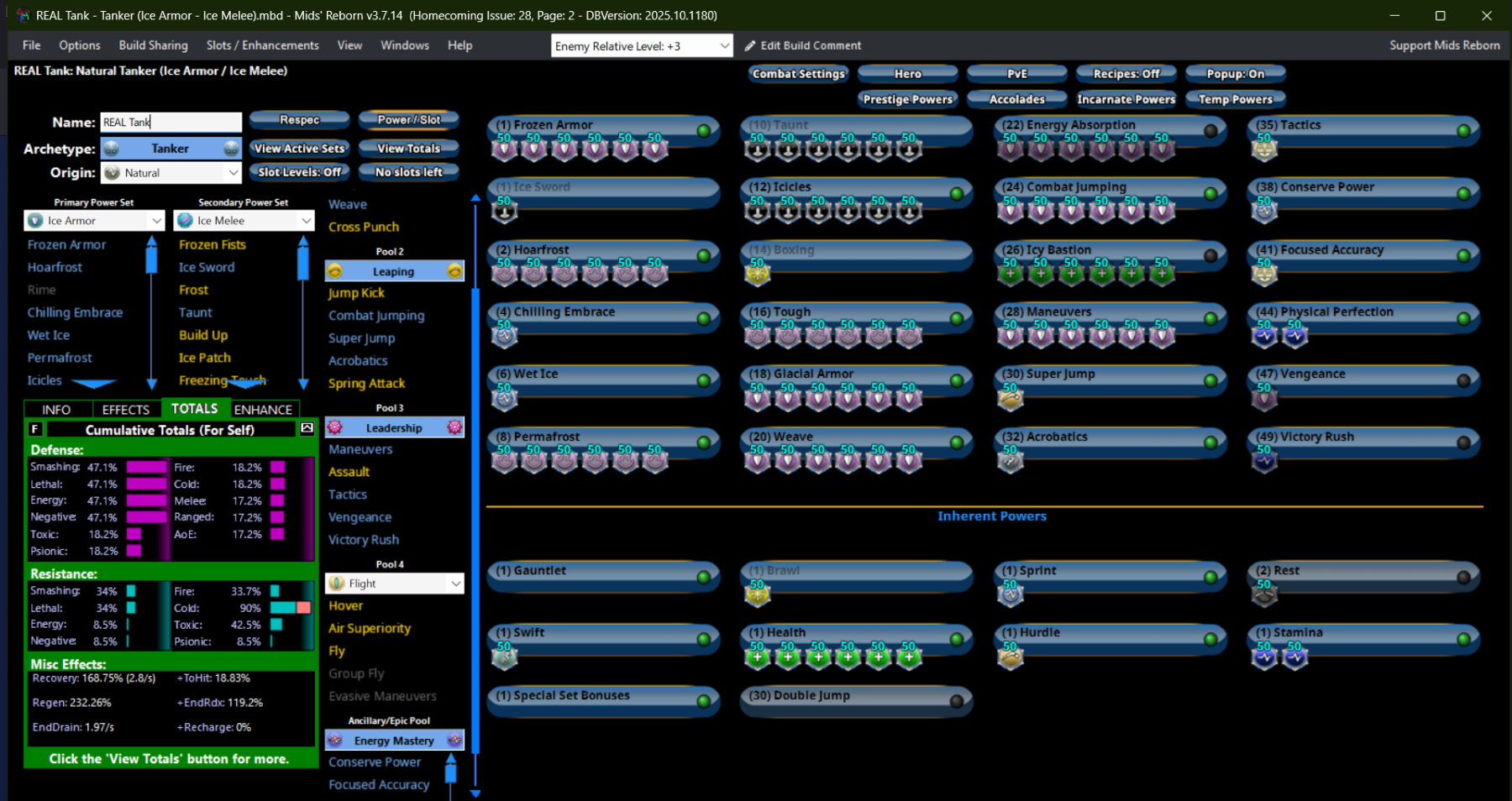 PLVRIZR Posted 13 hours ago Posted 13 hours ago (edited) 33 minutes ago, Glacier Peak said: The return of @Diantane. Many of their followers waited with baited breath for the wise words of their leader. Why play anything in this game without their blessing? Doing so would be foolish and a waste of time. Unless fun is defined by @Diantane, none can be had. ^---this And for the newer players (please read some of D's previous posts...more like "Diatribes by Diantane") I will say that unless you specifically want the original feel of Live, and only DOs/SOs, there's no reason you can't have both tanker ATO procs, by Posi1 (read any of the great money-making threads by @Sovera or @Yomo Kimyata). While I also take mostly armors on my tanks, early on, I'll make sure to get the first and second (or third) attacks, so I can slot the aforementioned procs. Quick recharging, fast animating, simple attacks...that proc a lot. The +res and absorb from MoT and GF, respectively, make big differences in survivability, especially pre-20. Fill that in with free prestige attacks, and you'll run out of end, before you run out of attacks. Edited 13 hours ago by PLVRIZR reworded 1 2 50s: Reunion - JAWBRKR (Inv/SJ Tank), Lich-ilicious (Necro/Dark MM) Torchbearer - Will Power-Flame (WP/Fire Tank) - VL100+, Frostee-Freeze (Ice/Emp Troller), DARKNESSREIGNS (Inv/DM Tank), BALLBUSTR (Inv/SS Tank) Indomitable - PLVRIZR (Stone/SS Tank), OBSDNBLDR (Dark/Stone tank), The Atomic Warden (Rad/Rad Defender), FACESMSHR (EM/EA Brute) Excelsior - NUTCRCKR (Inv/SS Tank) - VL575+, DRKSTNITE (DA/DM Tank), Nosfera-too (Kin/Dark Defender), FIREBLLR (FIre/Therm Corr), THUGSRUS (Thugs/Dark MM), Marshal Mayhem (Fire/MA Tank), SLICRDICR (DB/WP Scrap), NECROTANK (SD/DM Tank), FRMRBRWN (Spines/Fire Brute) - VL100+, AVLANCH (Ice/Stone Tank), SWMPTHNG (Bio/Rad Tank), FREEZRBRN (Fire/Ice Tank), ZZAAPP (Elec/Elec Brute), Voltaic Thunderbolt (Elec/Elec Tank) Lemme Axe You Somethin' (Rad/Axe Tank), PWDRKEG (Fire/FIre/Pyre Tank), ATMSMSHR (Rad/SS Tank), Morphology of Flame (Bio/Fire Tank) OBSDNBLDR (Dark/Stone Tank) Concrete Leviathan (Stone/Titan Weapon Tank) Everlasting - MISSADVENTUR (Inv/SS Tank), Mace to the Face (SD/WM Tank): Retail 2004 (pre-I1) - 2012 lights out; Feb. 2020 - present