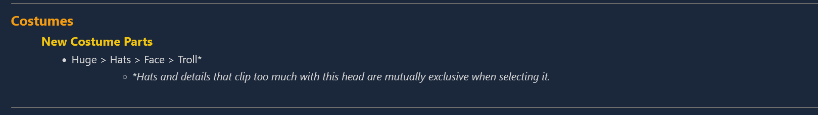 Wravis Posted 12 hours ago Posted 12 hours ago Should probably put the new, locked costume pieces in the Costumes section so it's not confusing and seemingly hidden. Aren't there 19 new reskinned pieces added too? 1 Give me money to draw your characters! Visit one of the public RP spaces I've made on Everlasting! Cabin-8752 - Funplex-11364 - Crash-15210 - Law-18824 - Exploreonfoot-20176 - Upside-14574 - Boardwalk-23004 - Gym-25035 - Chicken-25922 - Campus-25500 - Choochoo-28184 - Highschool-33072